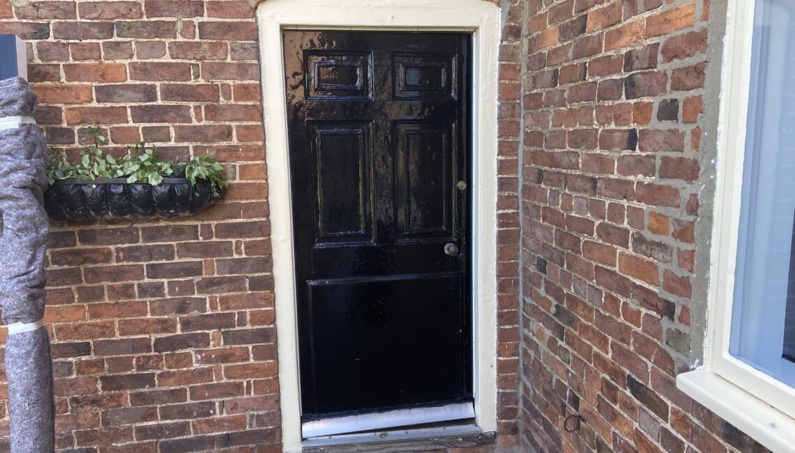 We set out the door carefully to match the existing opening. The proportions and details follow the original style so the new door sits naturally within the building.