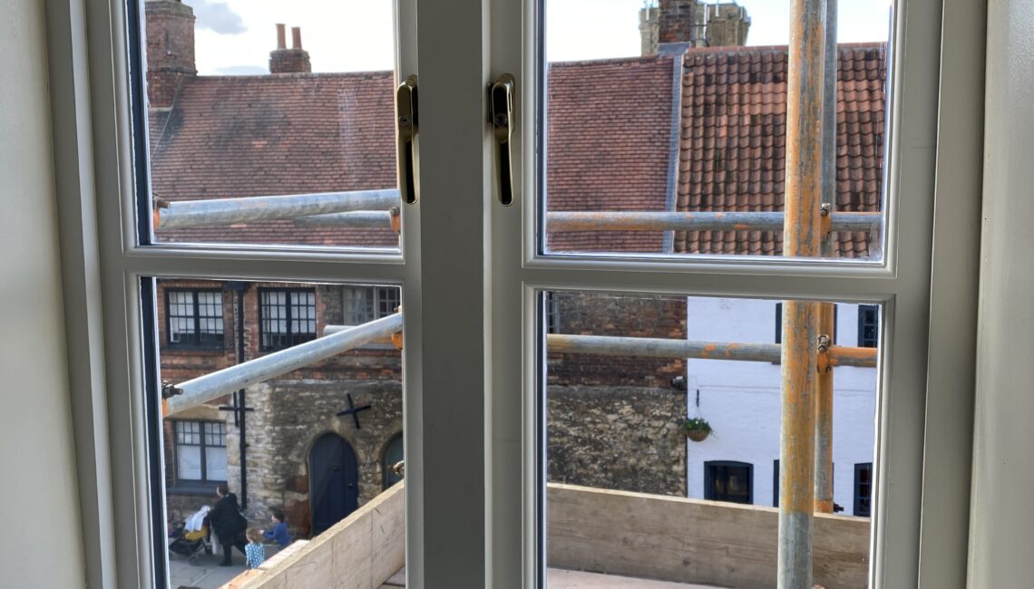 The property sits on Bailgate, which is one of the busiest streets in Lincoln. Because of this, we arranged scaffolding permits with the local authority. We also worked with a local scaffolding company to access the dormer safely.